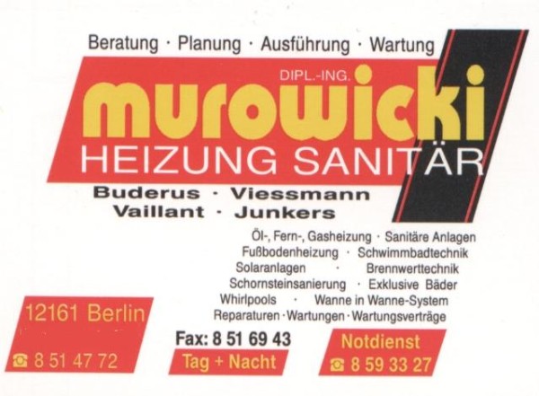 Firma: Dipl.-Ing. Murowicki Haustechnik 030/85147 72 Notdienst 030/859 33 27
